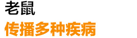 老鼠是很多疾病的貯存宿主或媒介,已知老鼠對(duì)人類傳播的疾病有鼠疫、流行性出血熱、鉤端螺旋體、斑疹傷寒、蜱性回歸熱等57種。